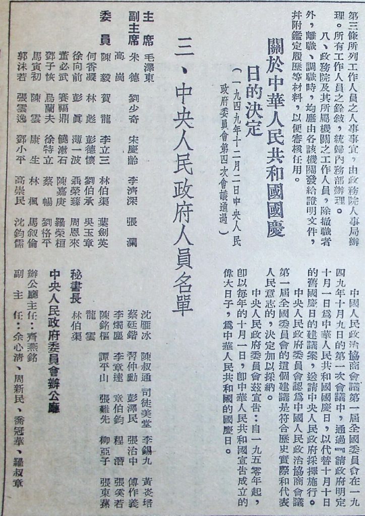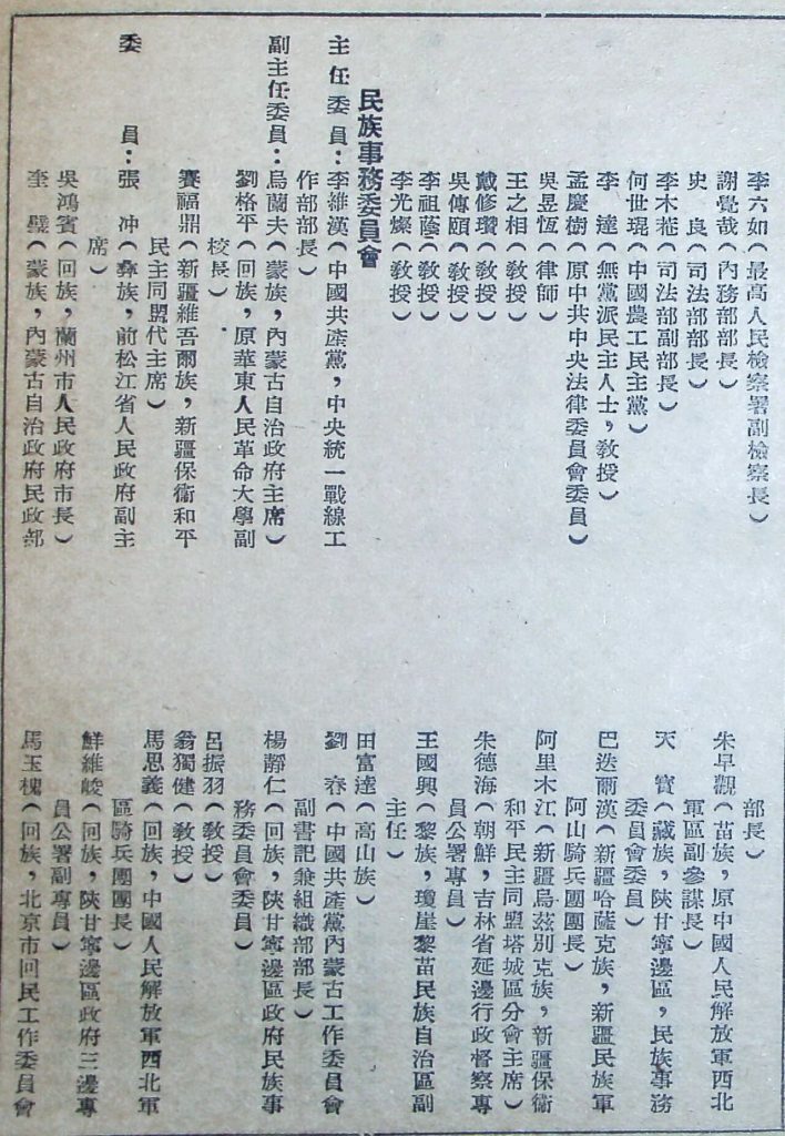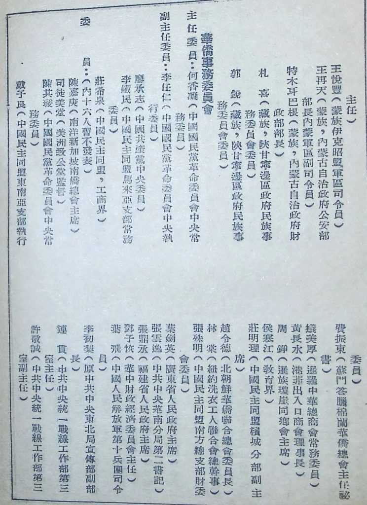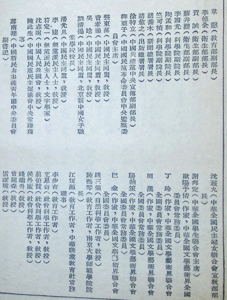 委员陈毅贺龙李立三林伯渠叶剑英何香凝林彪彭德怀刘伯承吴玉章徐向前彭真薄一波聂荣臻周恩来董必武赛福鼎饶漱石陈嘉庚罗荣桓邓子恢乌兰夫徐特立蔡畅刘格平马寅初陈云康生林枫马叙伦郭沫若张云逸邓小平高崇民沈钧儒沈雁冰陈叔通司徒美堂李锡九黄炎培蔡廷锴习仲勋彭泽民张治中傅作义李烛尘李章达章伯钧程潜张奚若陈铭枢谭平山张难先柳亚子张东荪龙云