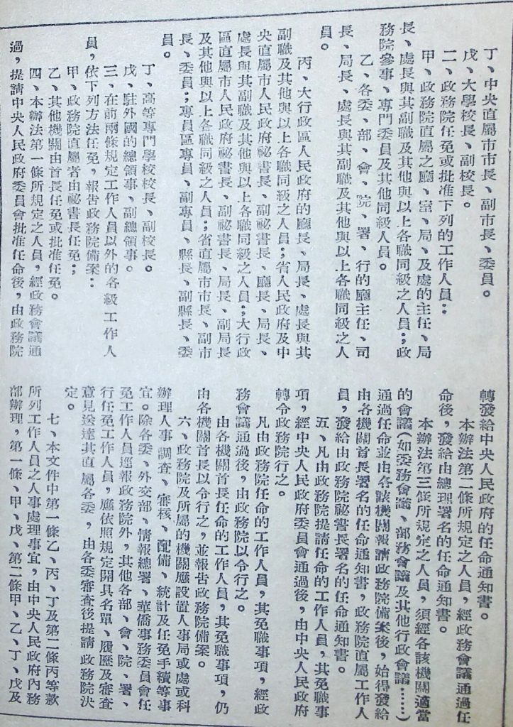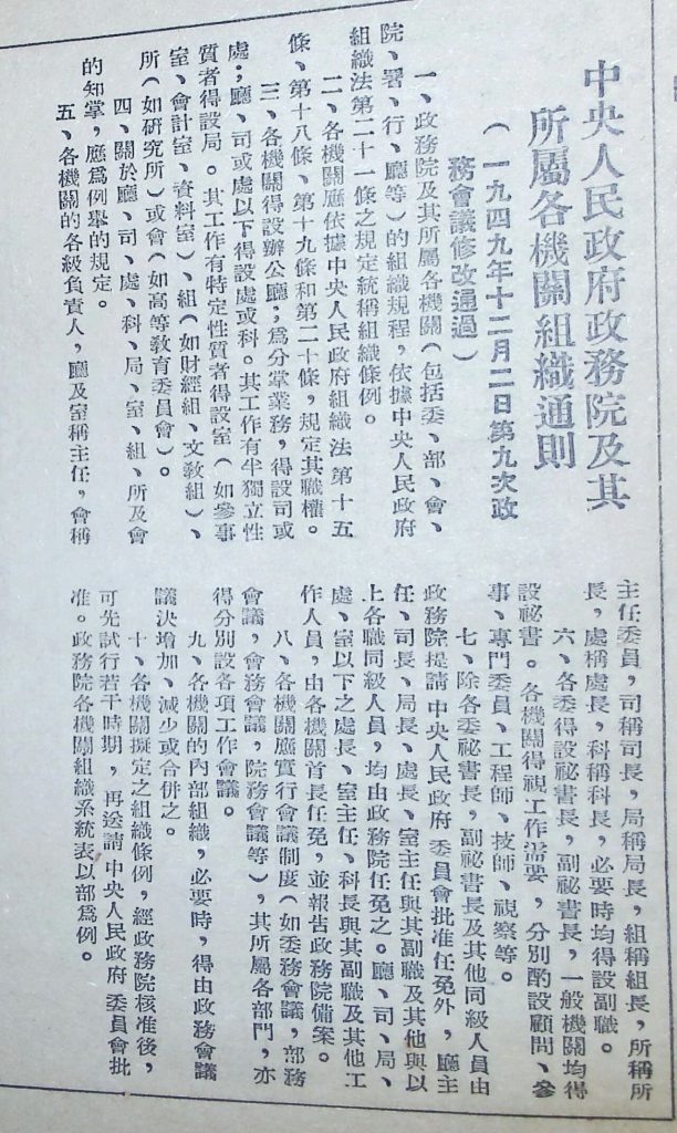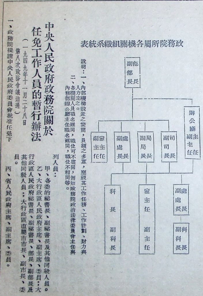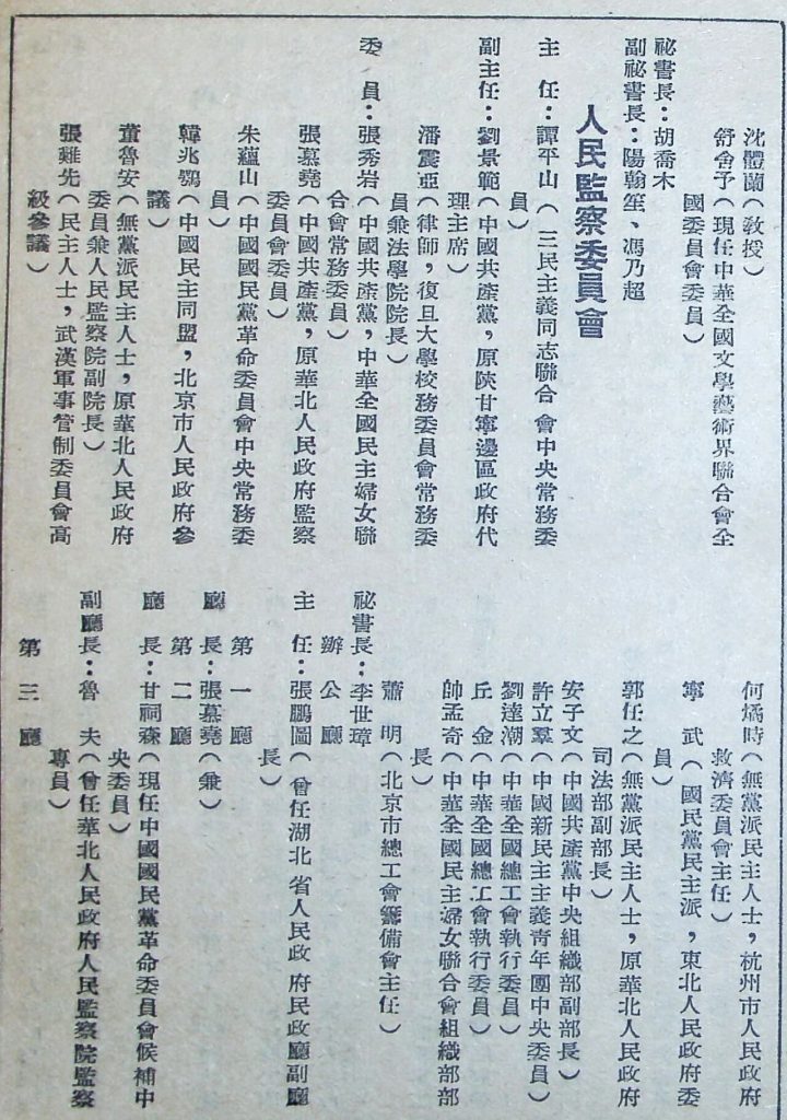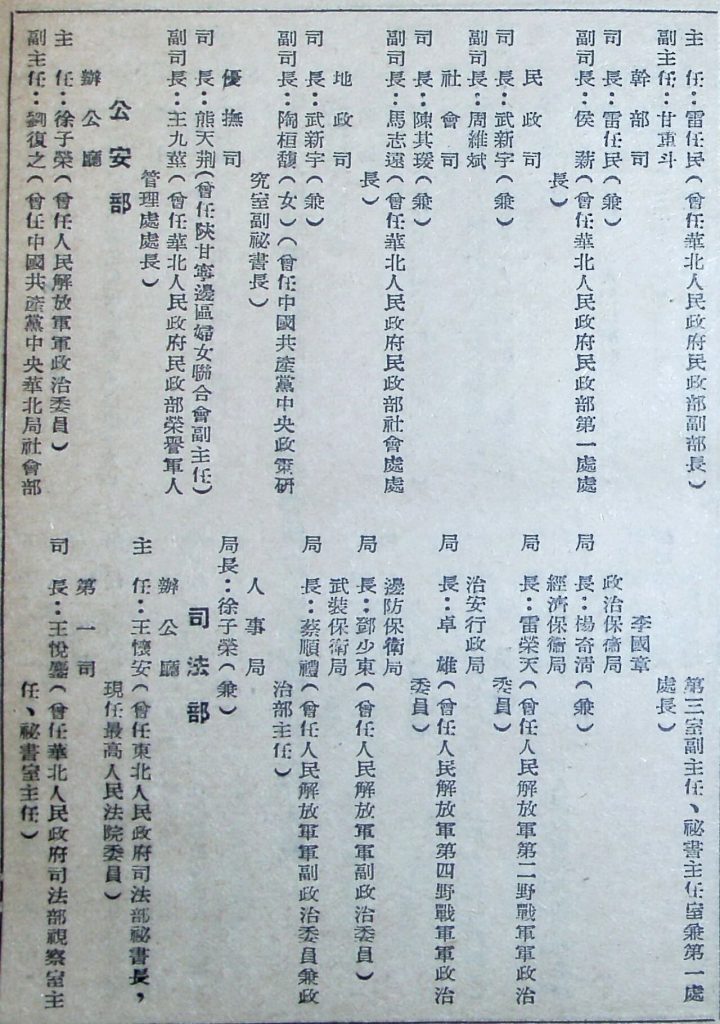 政务委员:谭平山(三民主义同志联合会)谢觉哉(中国共产党)罗瑞卿(中国共产党)薄一波(中国共产党)曾山(中国共产党)滕代远(中国共产党)章伯钧(中国民主同盟)李立三(中国共产党)马叙伦(中国民主促进会)陈劭先(中国国民党革命委员会)王昆仑(三民主义同志联合会)罗隆基(中国民主同盟)章乃器(民主建国会)邵力子(国民党民主派)黄绍竑(国民党民主派)李富春(现任东北人民政府副主席)