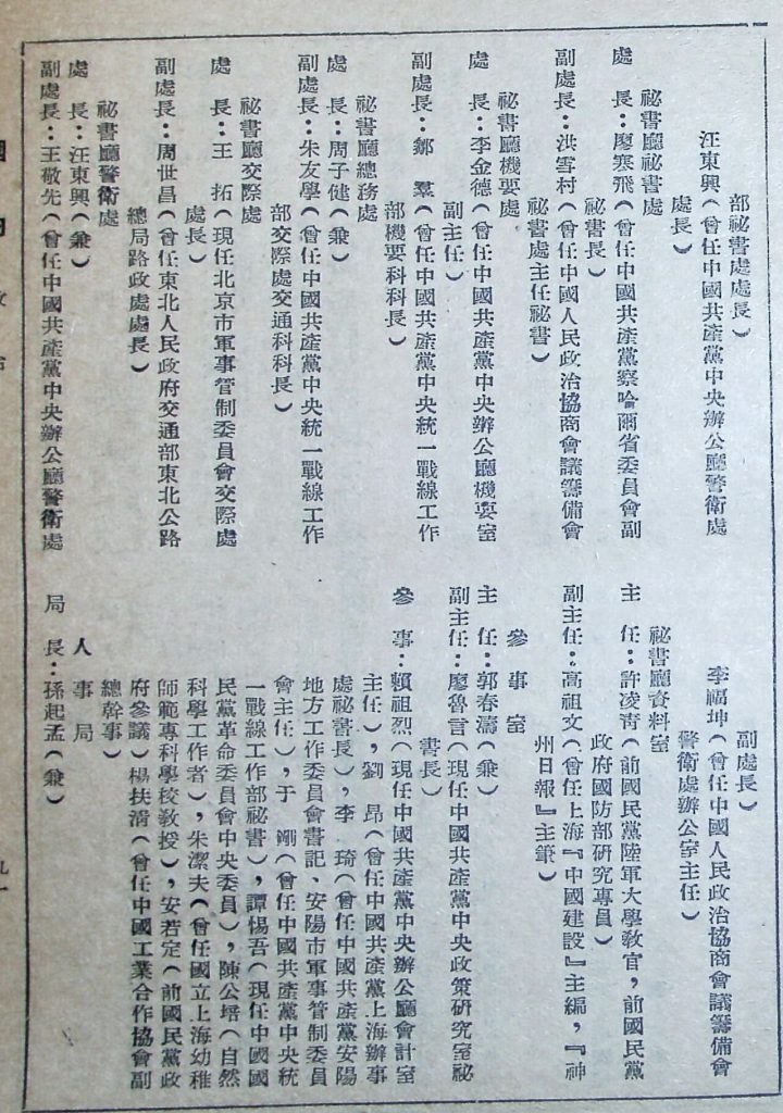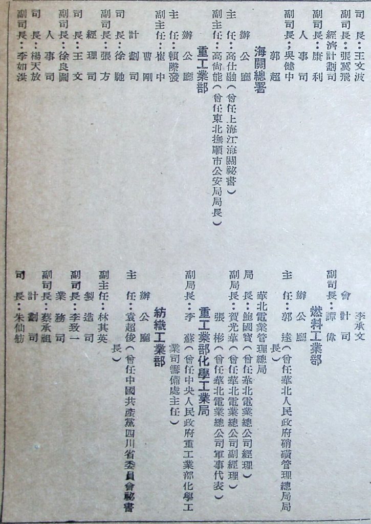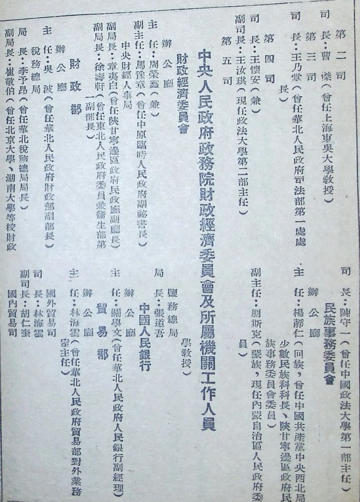 主任:陈云(中国共产党,原东北财政经济委员会主任)