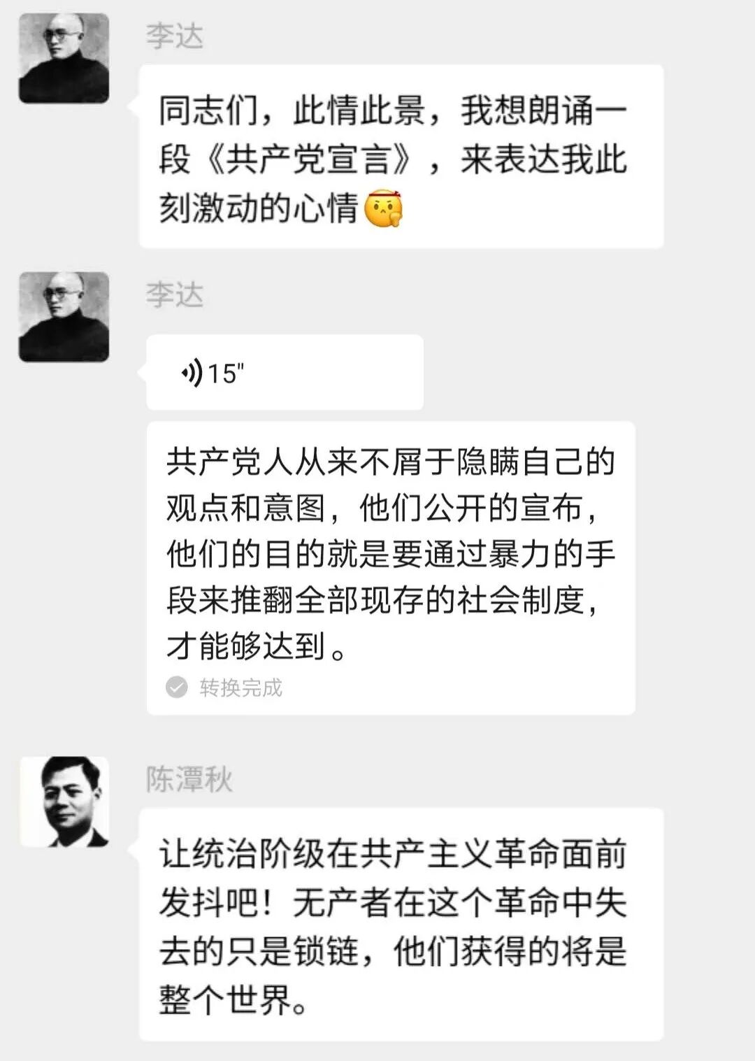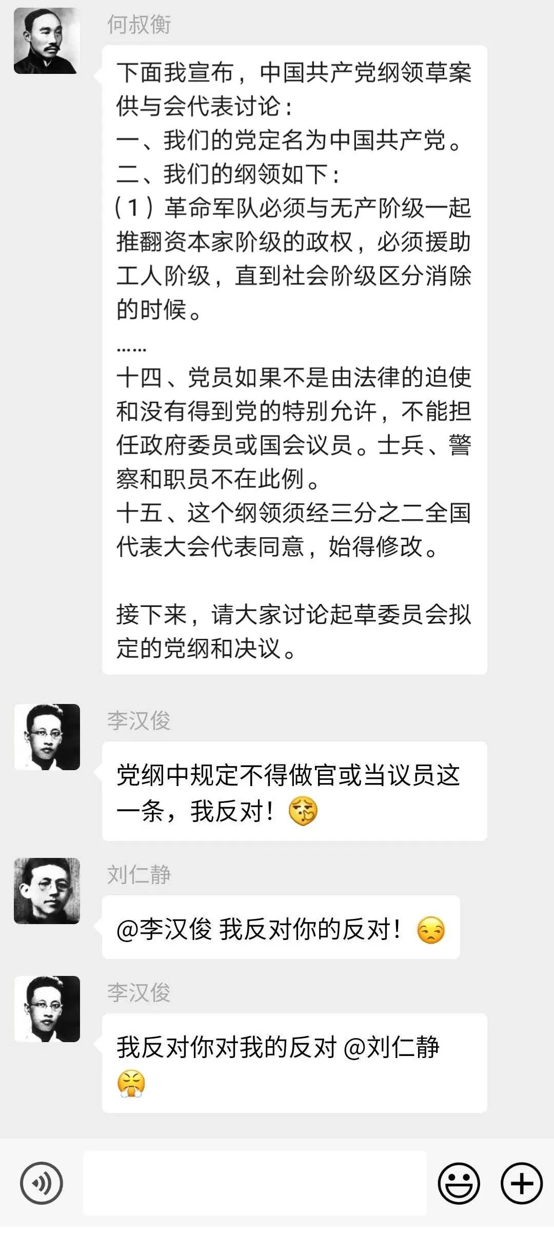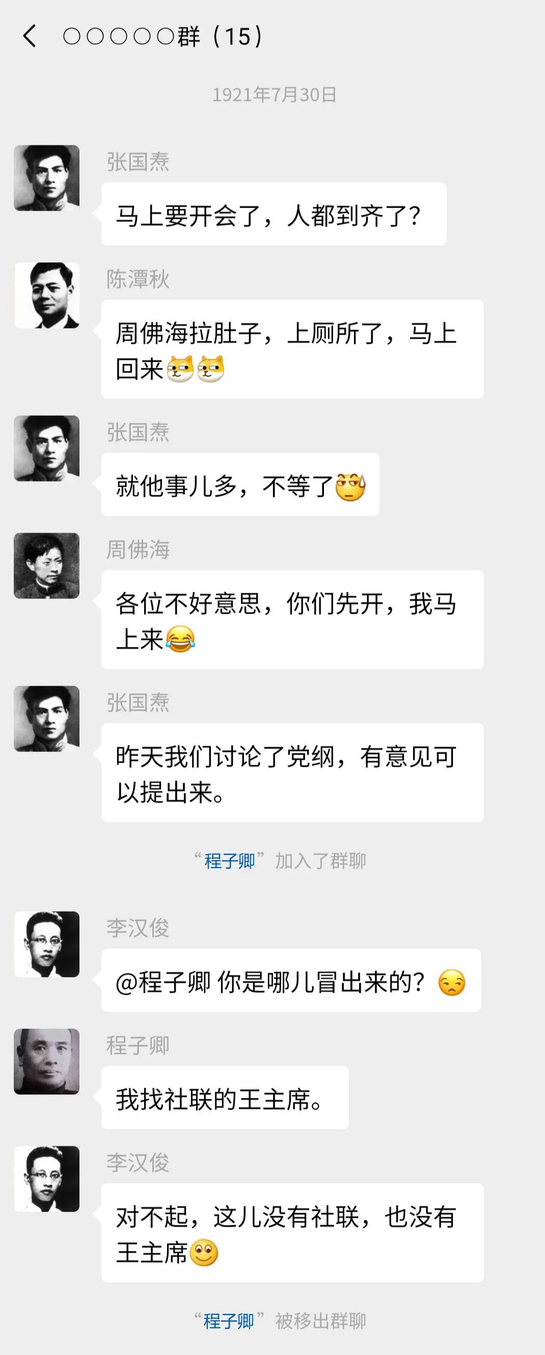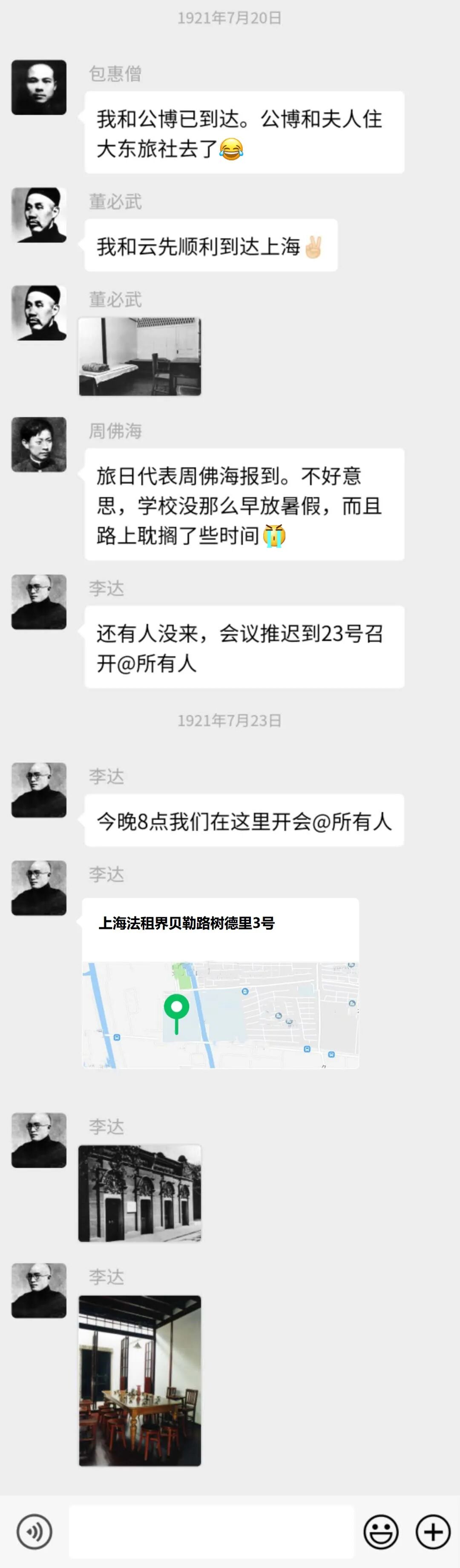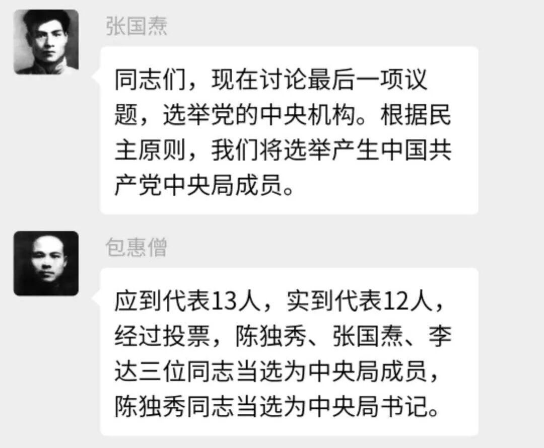 陈独秀(实庵先生)和李大钊(守常先生)因工作繁忙而未能到会。当时有13名代表参会,加上共产国际两名代表共15人。