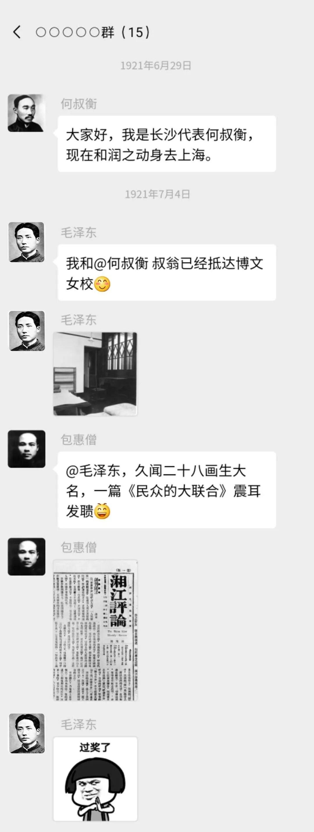 1921年6月,毛泽东接到陈独秀等人发来的出席党的全国代表大会的通知,秘密前往上海。谢觉哉在日记中写道:“午后六时,叔衡往上海,偕行者润之,赴全国○○○○○之招。”谢觉哉后来解释说,日记中五个圆圈代表的意思是“共产主义者”,当时怕泄露这件大事,只能以“○”代意。