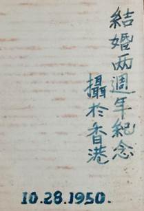 王芸仙、马克勤1950年8月从台湾撤往香港 (右图)照片后为马克勤留字说明
