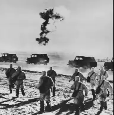 我国第一颗原子弹爆炸时防化兵侦察分队在核爆炸区进行侦察检测
