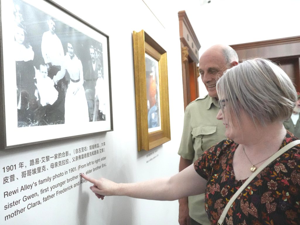 10,菲利帕女士在有曾祖父,国际友人甘扬道先生的图片前