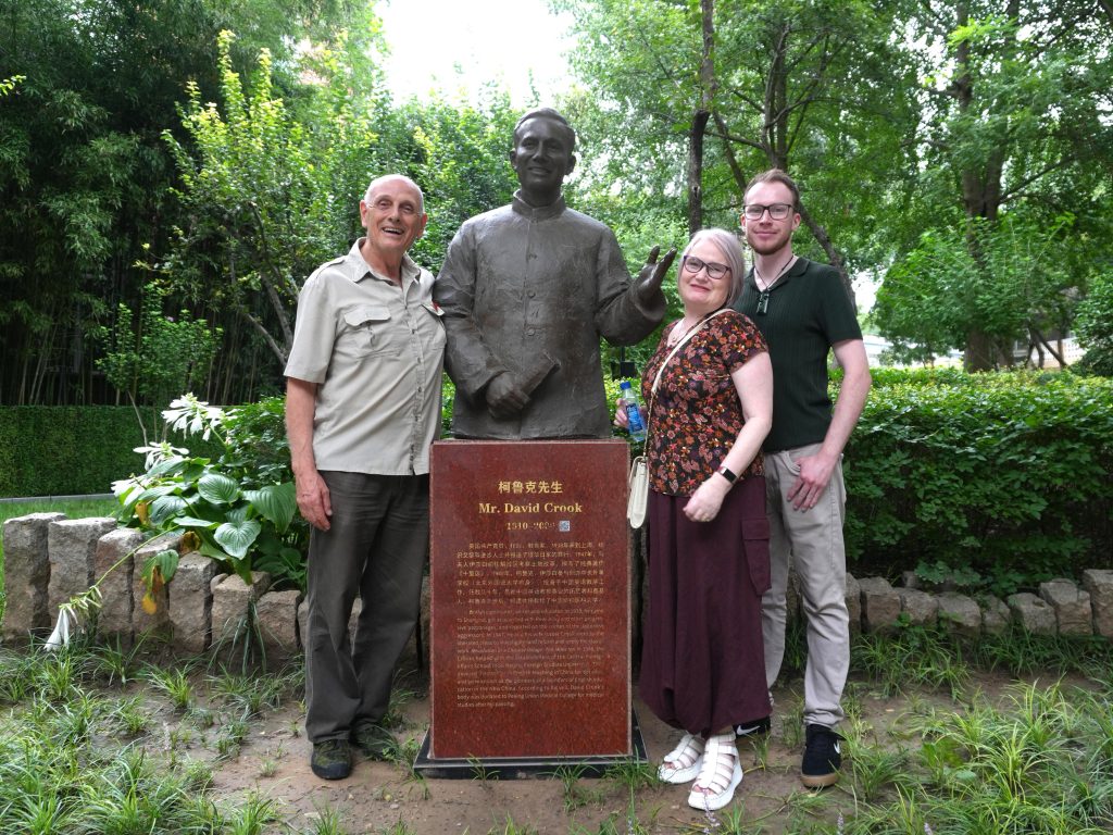 5,在柯马凯父亲、国际友人柯鲁克先生雕像前,柯马凯先生与司徒瑟茹女士及其子司徒杰森先生合影留念