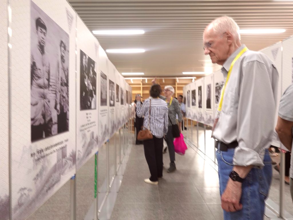 11,柯马凯主席在《并肩战斗——世界反法西斯战争中的国际友人》图片展上为嘉宾进行讲解