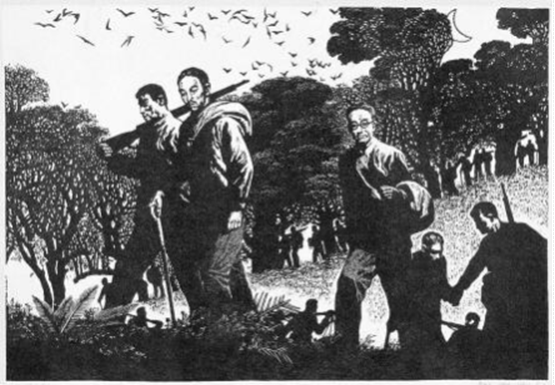 木刻版画《晓风残月》1981年,作者:蔡迪支 、许钦松