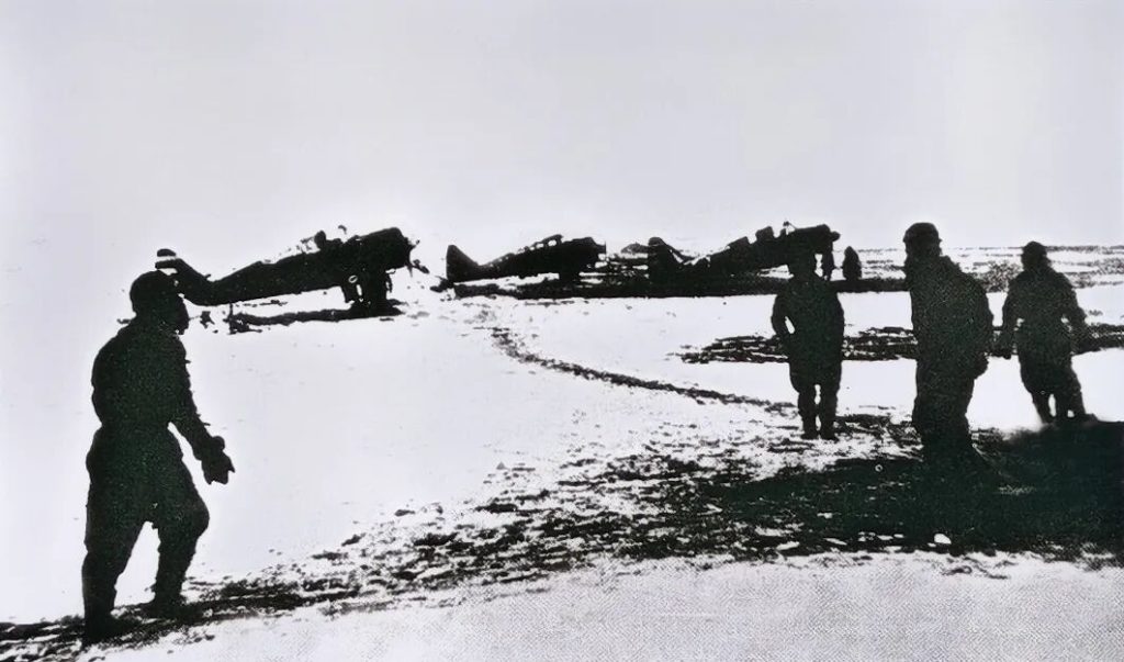 第三是航空器材和燃料匮乏。几架同型飞机轮流使用一副螺旋桨、一组机轮,用自行车打气筒给飞机轮胎打气,用木炭火盆对飞机发动机进行“烤缸”,手摇摇把启动发动机等。他们用智慧和双手,突破了严寒中的种种困境。