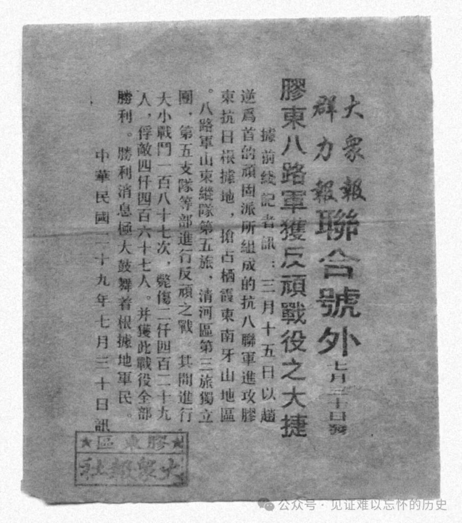 千禧年左右,笔者在胶东某地古玩店偶遇的《大众报》与《群力报》联合号外,便是典型例子:纸张、字体皆仿得中规中矩,可细究之下,其上标注的1940年7月出版时间,却与历史相悖!彼时的胶东各救总会机关报《群力报》尚未创刊,这般明显的历史漏洞,稍不留意便会落入陷阱。店主略显尴尬,随即从几百降到几十元。最后在笔者引导下,干脆在抽屉里拿出几十份同样该号外,并说已经卖掉了上百张!