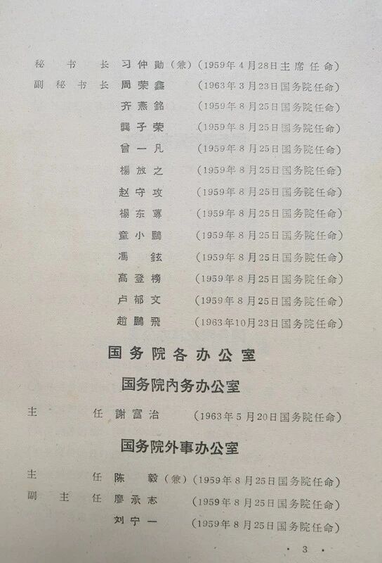 三、业經任命的人員,凡在一九六三年内死亡或受撤职、降职以上处分並已报国务院批准或备查者,不再列入本任命录。