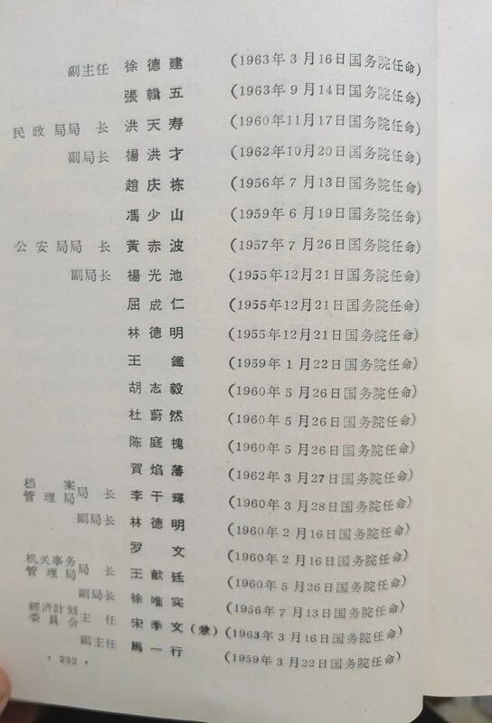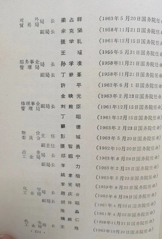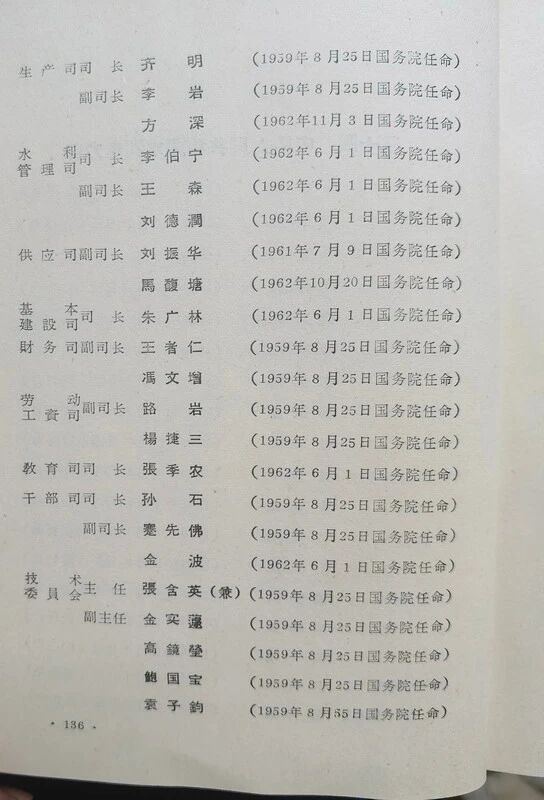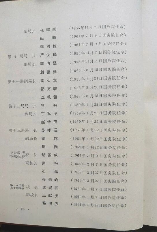 这本名録是由当时的内务部编印的,是不是当时没有设人事部啊?后来内务部也撤编转制了吧。我简单翻拍整理了一下,发上来一部分,后边的省份部分和大使部分没有全部发上来,468页太多了。我看到一些内容在这里先简单提示一下如:农垦部的部分,里边的将军真多啊,这真是时危聊从军,事定复为民(农)。里边的姜齐贤将军还是虎将独臂将军贺炳炎的岳父。驻古巴大使王幼平的女儿嫁给了胡耀邦的儿子;李鹏的母亲赵君陶是北京化工学院副院长,在这里有任命名单在册。在这里我的朋友们找找看看自己认识的老前辈和自己的亲朋好友的信息,这些信息是实打实的真料,是由国家级的背书的。