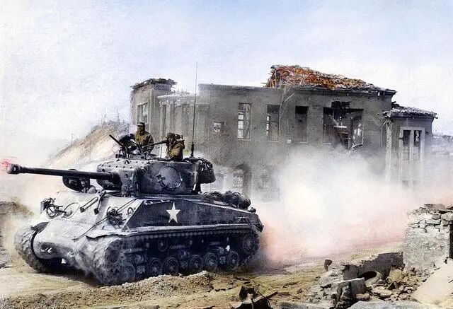 美军1个师中就有4个18门制的重炮营、1个71辆编制的坦克营和3个22辆制的坦克连,各类汽车3800辆,这些技术装备我军几乎所有步兵军一直到战争末期也未能实现。